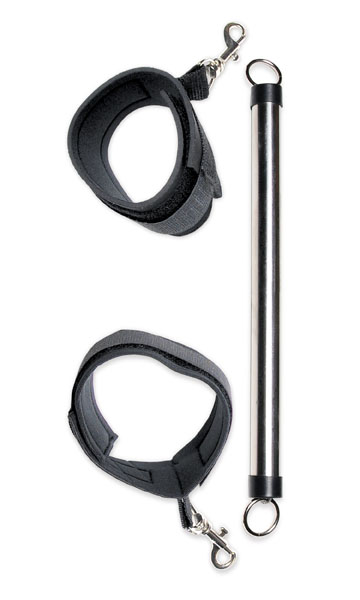 Эти наножники с фиксацией заставят Вашего партнера раздвинуть ноги пошире - специальная металлическая трубка, которая крепится к фиксаторам, не позволяет соединить лодыжки. При этом наножники не травмируют кожу благодаря специальным подкладкам. Длина - 72,4 см.